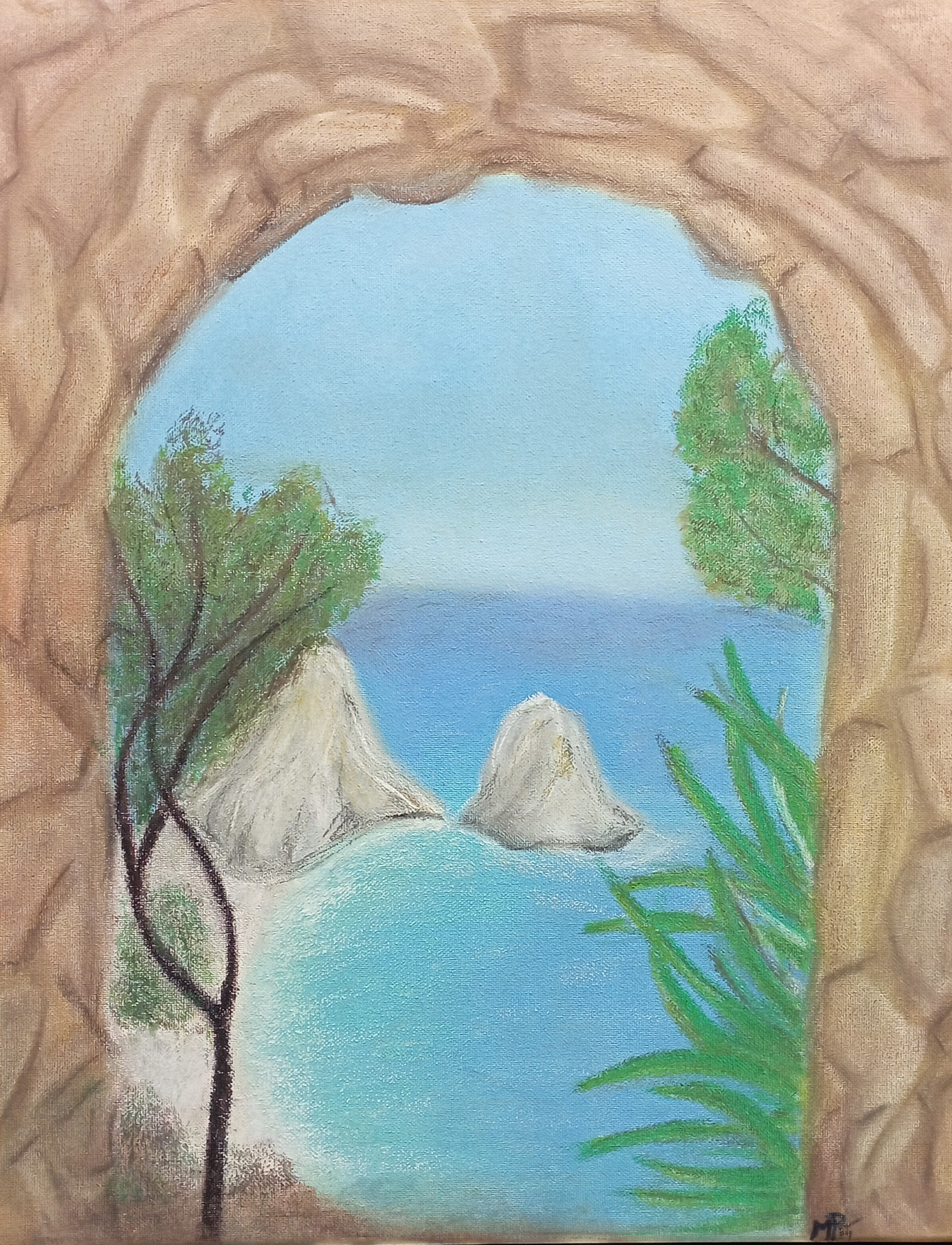 Kombinovaná technika (suchý pastel, akryl, pasta). 50x70cm