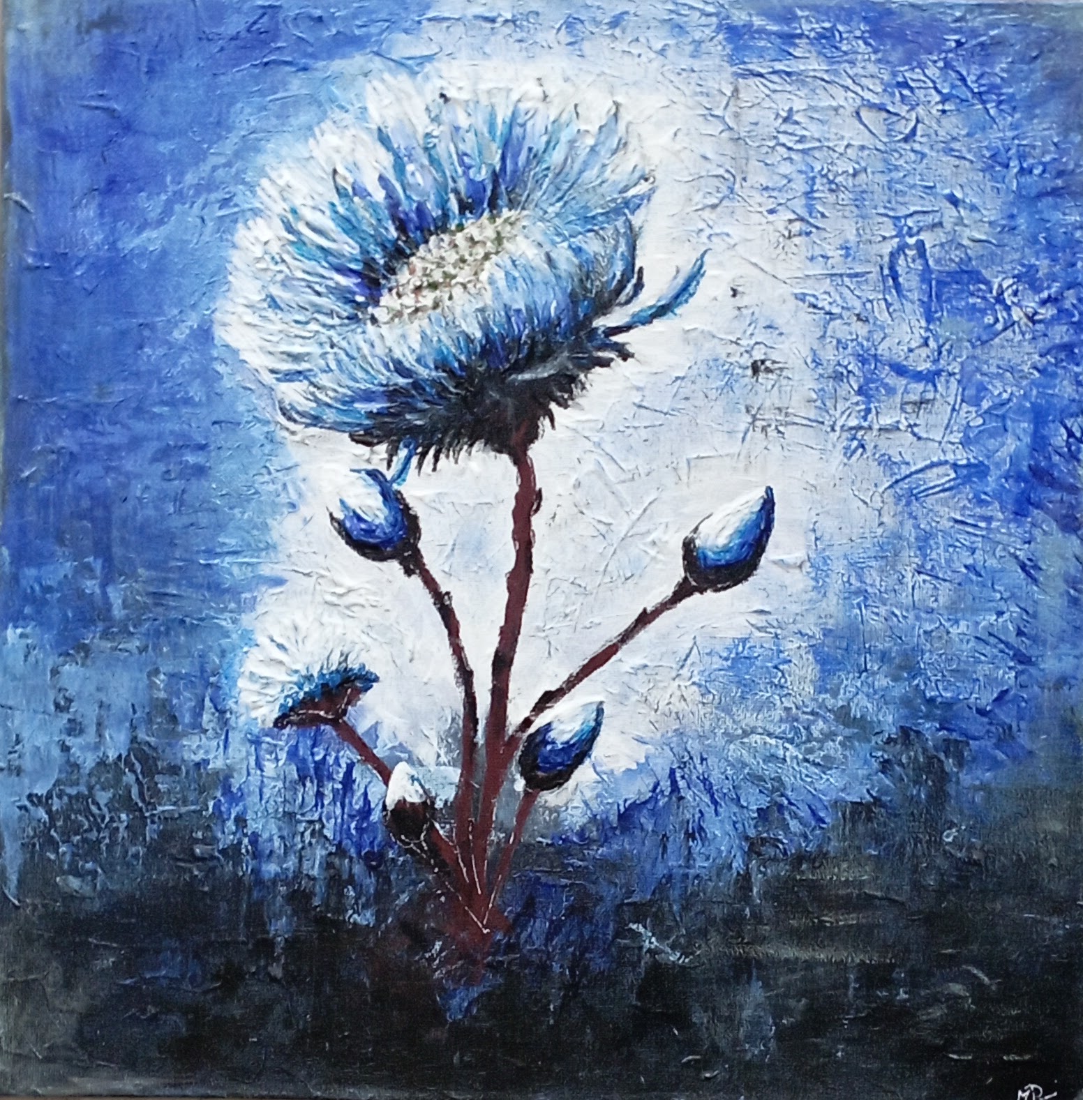 Kombinovaná technika ( suchý pastel, akryl, tvarovaci pasta) lak, 50x50cm