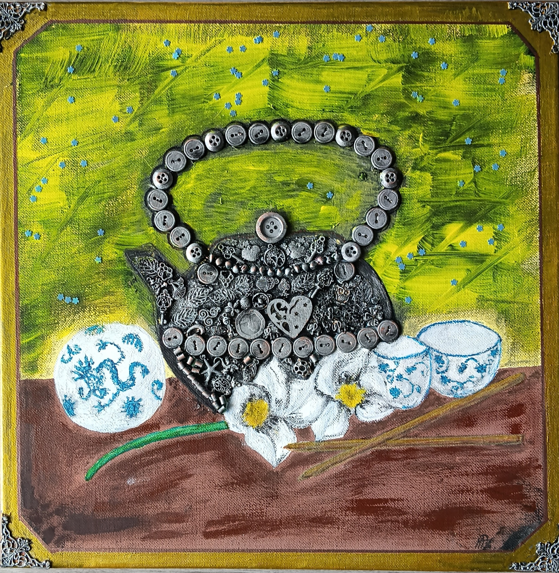 Kombinovaná technika, akryl na plátně, 40x40