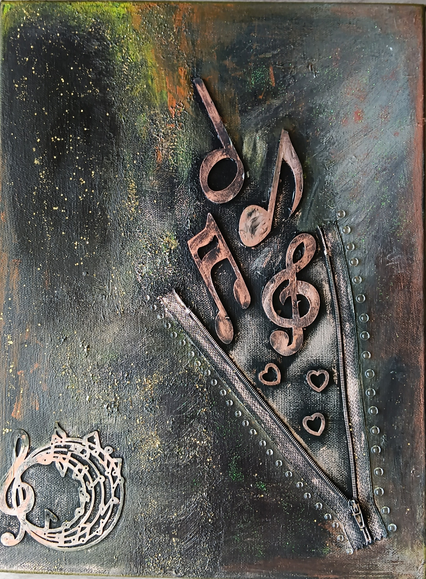 Kombinovaná technika (suchý pastel, akryl, pasta, třpitky). Lak. 60x80cm.